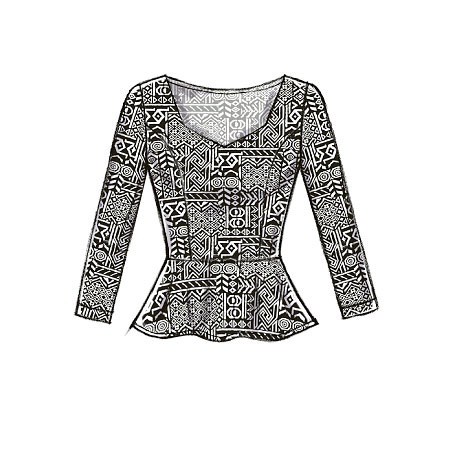 The BCBG collection convinced me that, when it comes to prints, a simple style is best. So, the pattern I chose was McCall’s 7126, a sculpted peplum with neck and sleeve variations,  princess seams, and hem variations. The front is lined, and it’s finished with a narrow hem.