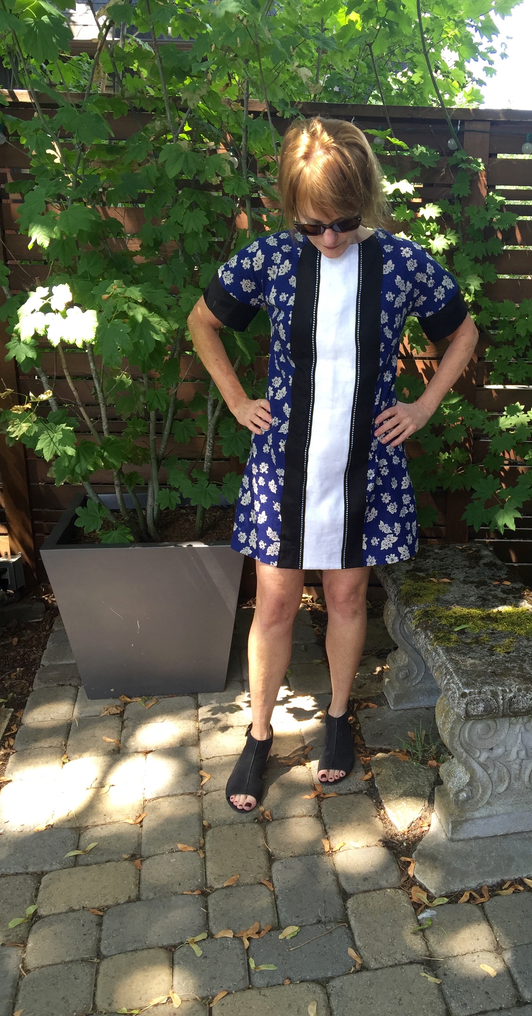 What a good solution for dealing with the print. The overall shape suits you well, and the colorblocking really balances the print. I hear you on scale. I’m so drawn to giant prints like you find in Marimekko, but the scale would be preposterous on my frame. I begrudgingly leave those awesome fabrics to my home and snatch up any small (but not too small) fabrics. The scale of this seems perfect for you!