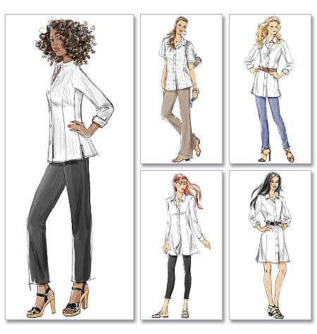 This McCall’s shirt pattern is one of my favorites. It has a front band, princess seams, hem slit openings, and collar variations. The instructions are very straightforward and easy to follow. It’s a nice basic pattern, that fits me well without any tricky modifications.