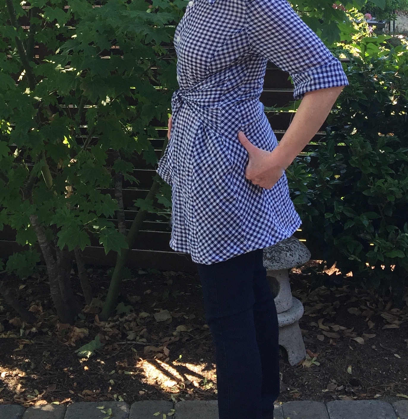If you stare at gingham for too long, do you go crazy? That’s what I asked myself as I completed yet another gingham top. My cat seems crazed if he stares at a fly for too long. His eyes gloss over and he starts to twitch. I’m sure I had that same vacant look in my eyes as I stitched down the home stretch on this top!