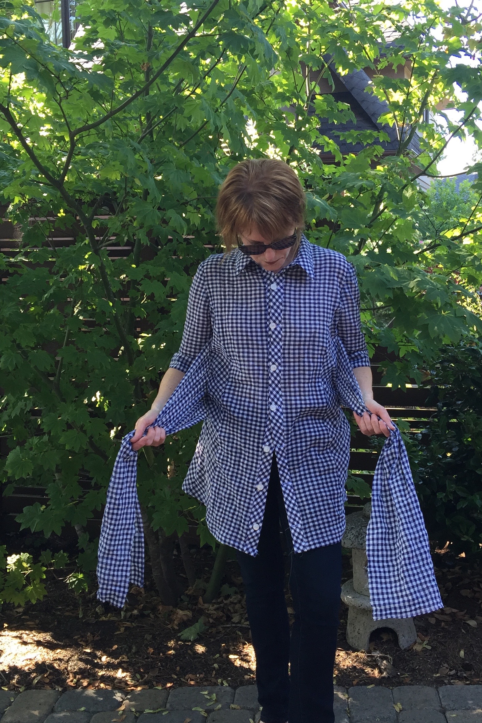 The answer is simple. Blame it on Anthropologie. I took a quick spin down their aisles recently, and noticed that gingham was ‘having a moment’. After trying a few garments on, I became convinced I would die if I didn’t add some gingham to my wardrobe, because, honestly, those little checks just make me feel good! Gingham is a cheery fabric, don’t you think? Who can frown, when they’re dressed in gingham?