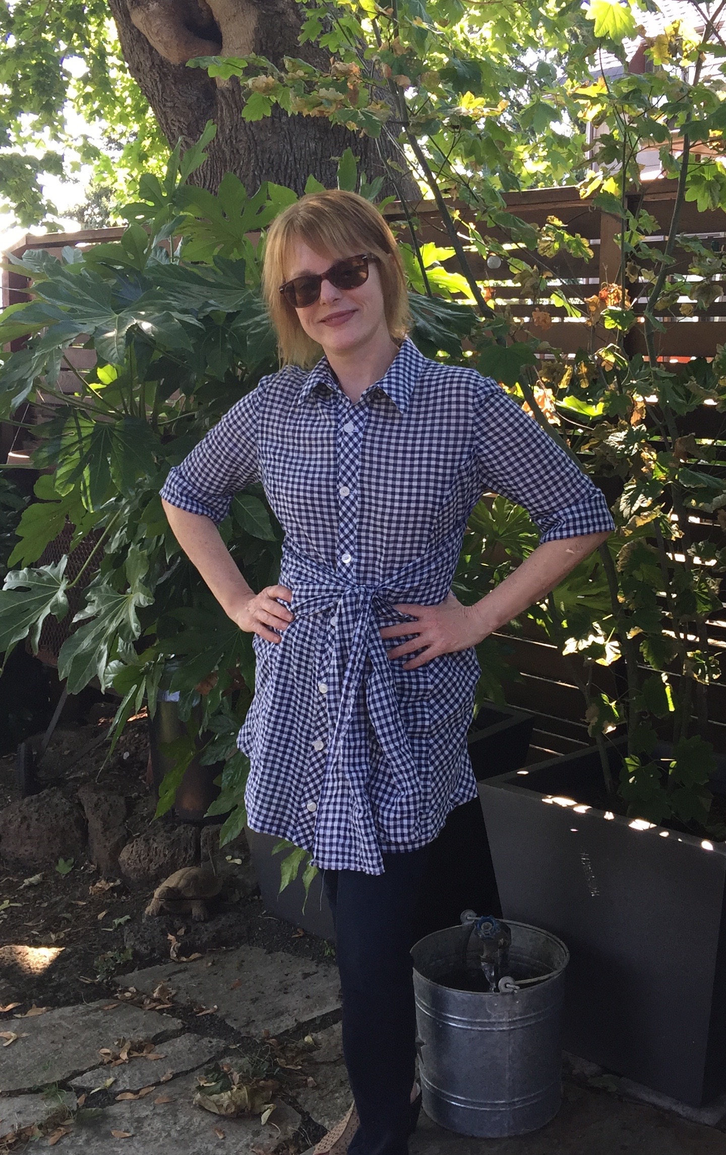 Believe it or not, it was over a hundred degrees today here in Portland Oregon. Yet I was comfortable in my light cotton shirt! This is a very good sign. Perhaps, this gingham top will become one of my ‘regulars’. After all, even Elizabeth Taylor wore gingham!