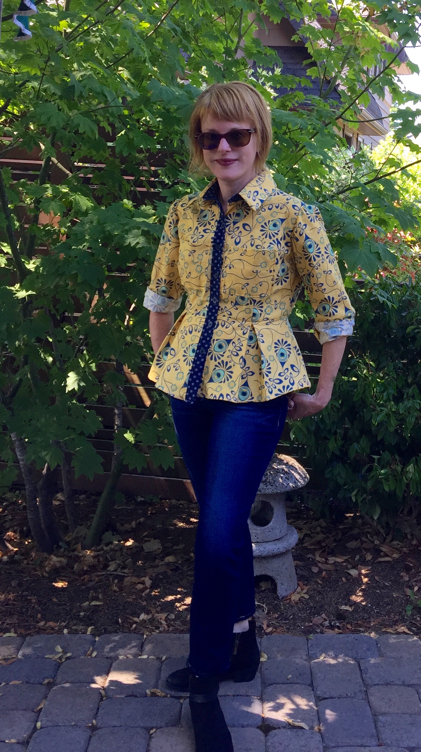 I made view B, a long sleeve version that I modified. My sleeves are closer to 3/4. I added a 3 inch cuff, so that I could push the sleeves up if it got too warm (rolled up here because we’ve had more than a few 100 degree days in Oregon this summer…EEK!).