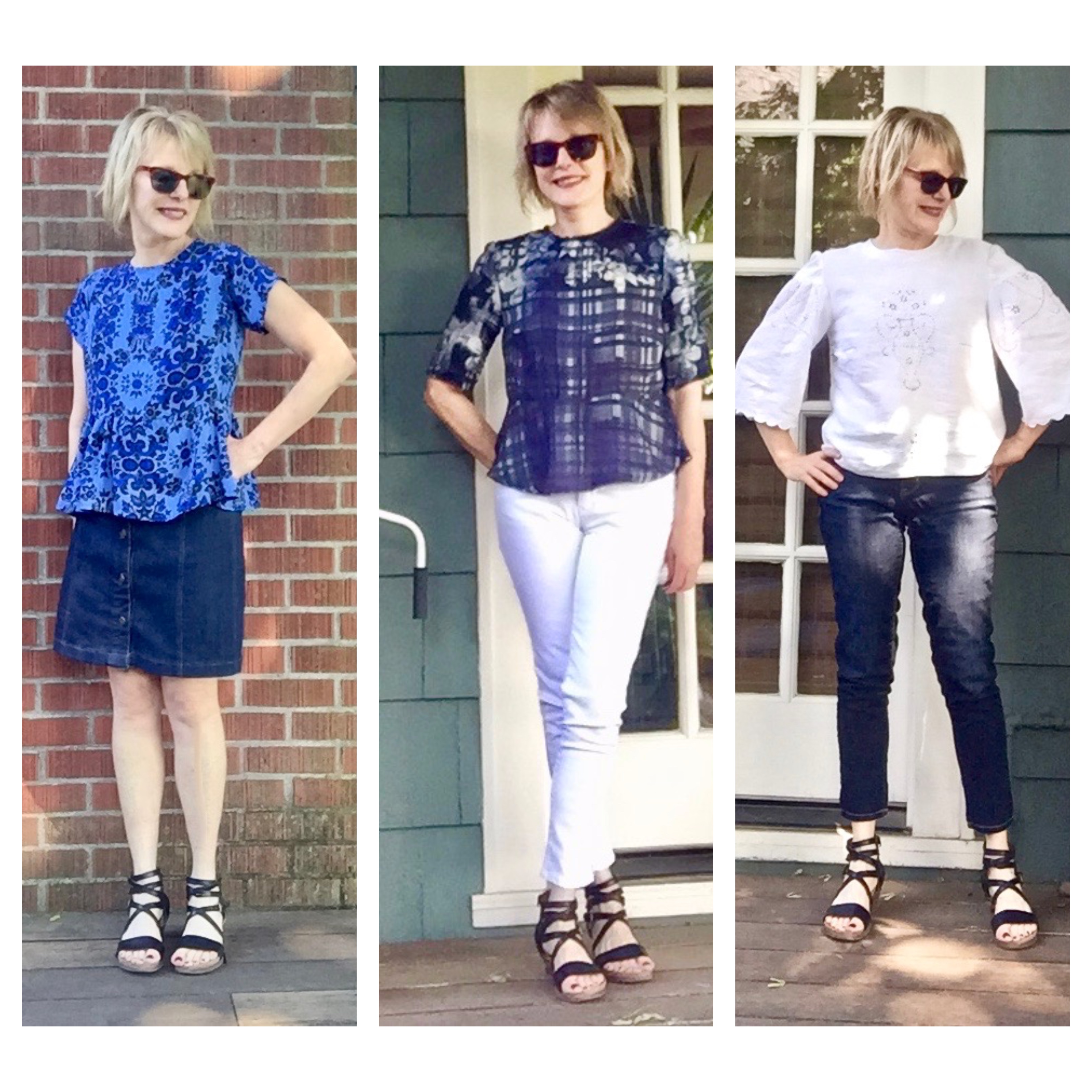 Always fun to see how you use one pattern and make it up in different ways. So versatile! Love them all, though I think the blue silk is a smidge ahead of the others, love the fabric and proportions of the peplum on it.