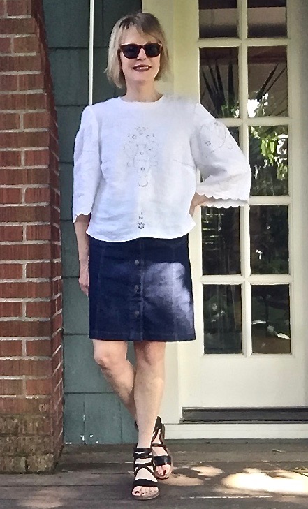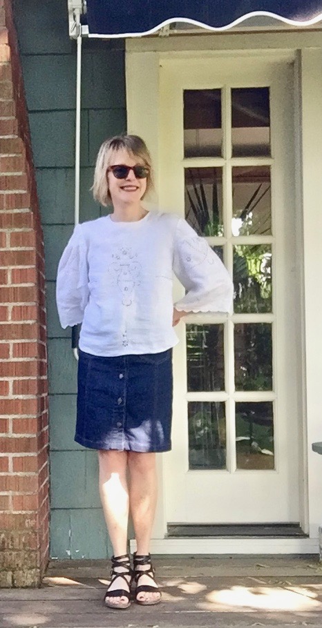 If you bought that pattern at a Joann’s sale, you are indeed getting your money’s worth! All the tops are lovely but I’m especially impressed with the linen tablecloth version. How fun to use such “found fabric.”