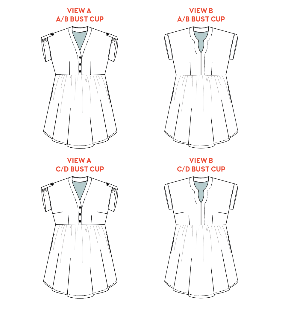 To make my top, I modified View A to give it a bit more of a Safari vibe. I left the upper bodice and neckline as designed (and they fit like a dream!).  Then, instead of gathering the bottom bodice panel,  I cut it to fit the measurement of the upper bodice lower seam, plus a seam allowance. I also drafted darts on the lower bodice to mimic those on the upper bodice. The pattern suggests you insert the ties in the side seams or in the back bodice darts. I chose to put them in the back darts, and I think that’s part of the reason the bodice fits so well. I love the sleeve cuffs and the button tabs.