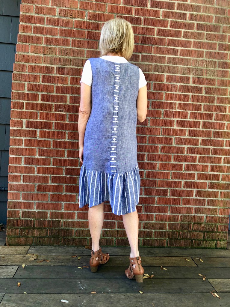 Fabric – Linen was the perfect fabric for Italy. It made me comfortable no matter what the weather. Personally, I could care less about the wrinkles. For this dress, I used a solid blue linen from my stash, purchased last season at the Mill End Store. The striped linen is from Joann’s.