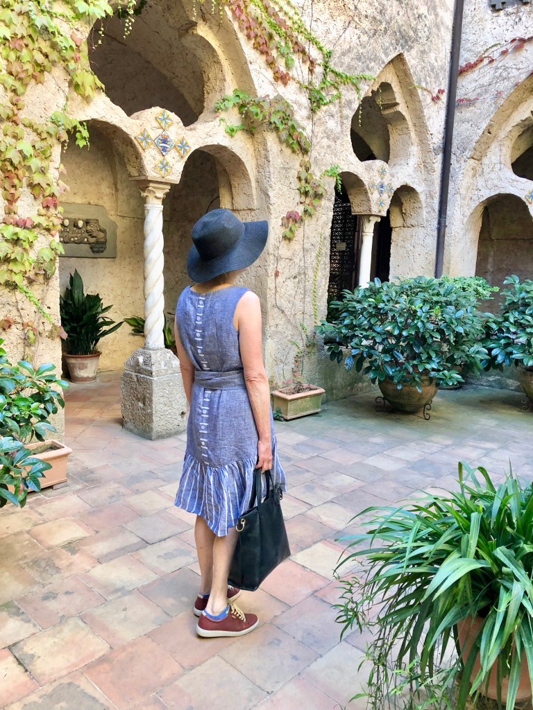 Although the weather here in Portland is a bit on the cool side, I wanted to share the dress I wore the most in Italy – – a linen dress that I finished the day we left, LOL!!! As usual, I decided at the last minute to add a dress to my travel wardrobe.