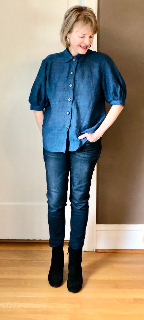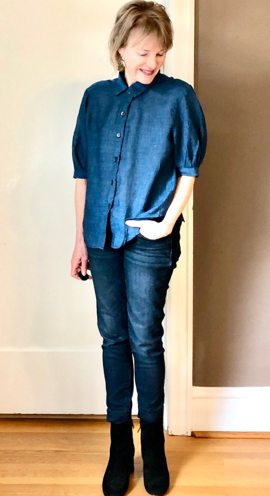 Love these blouses! They both show your beautiful work. Linen is a perfect fabric for this blouse. I have been searching for a sleeve that is just like this: Elbow length sleeve with a big cuff..very on trend. I have 2 Japanese sewing books but I don’t think I have the one you mentioned. I see another purchase coming. I have told you before and I will say it again: You are my muse!
